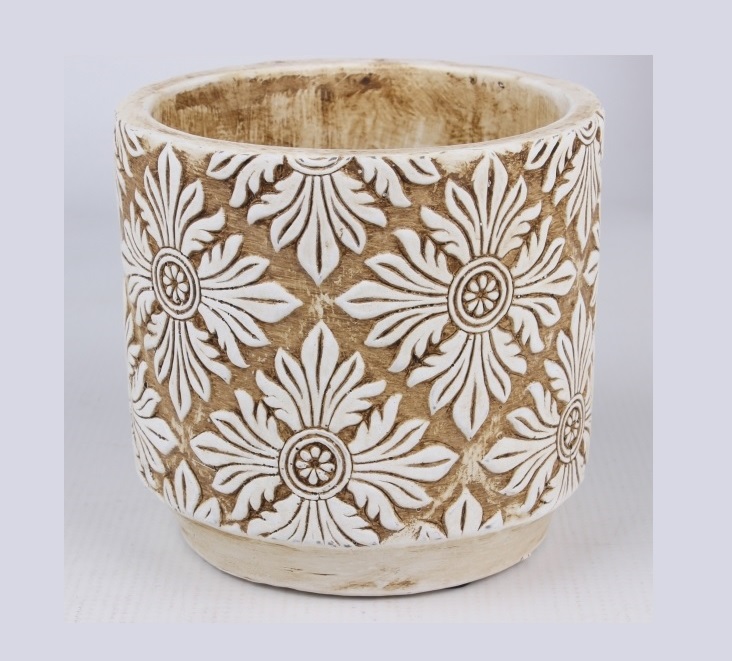 Dimensiuni: 16x15cmDescriere:Bol din beton cu flori